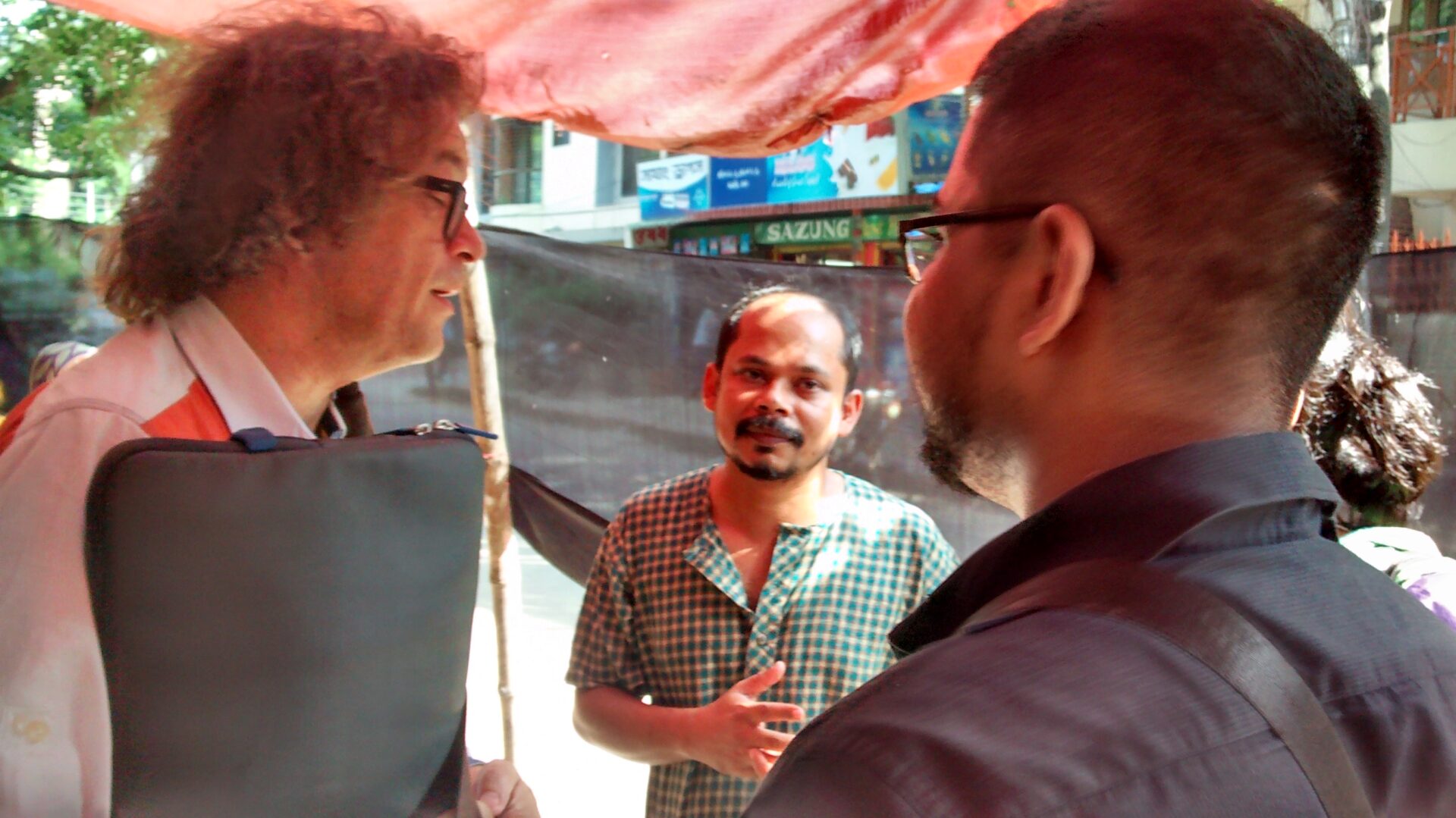 Ali asks Martijn on his definition of homeless, since he himself found them to be so different in Europe then here in Bangladesh. Martijn answers that there being homeless in different countries can have a completely different meaning, so it is impossible to make a definition. Thats why we try to show these differences in the Homeless of the World project. What we have encountered in Bangladesh are clean people, who look beautiful and are working or looking for work. In Holland there is no need to live on the street, and there is enough help. So there are the people who are drug-addicts, and psychiatric patients who live on the streets. In Sao Paulo homeless are living like a tribe, nomads, living together in groups and doing work on the streets.