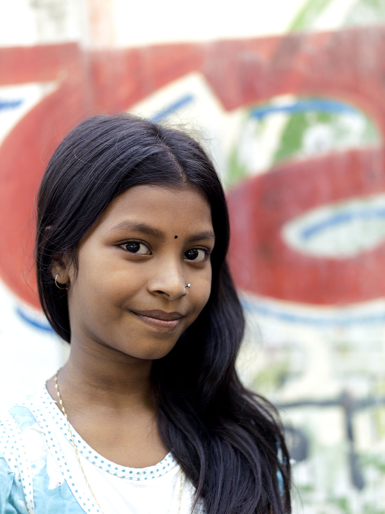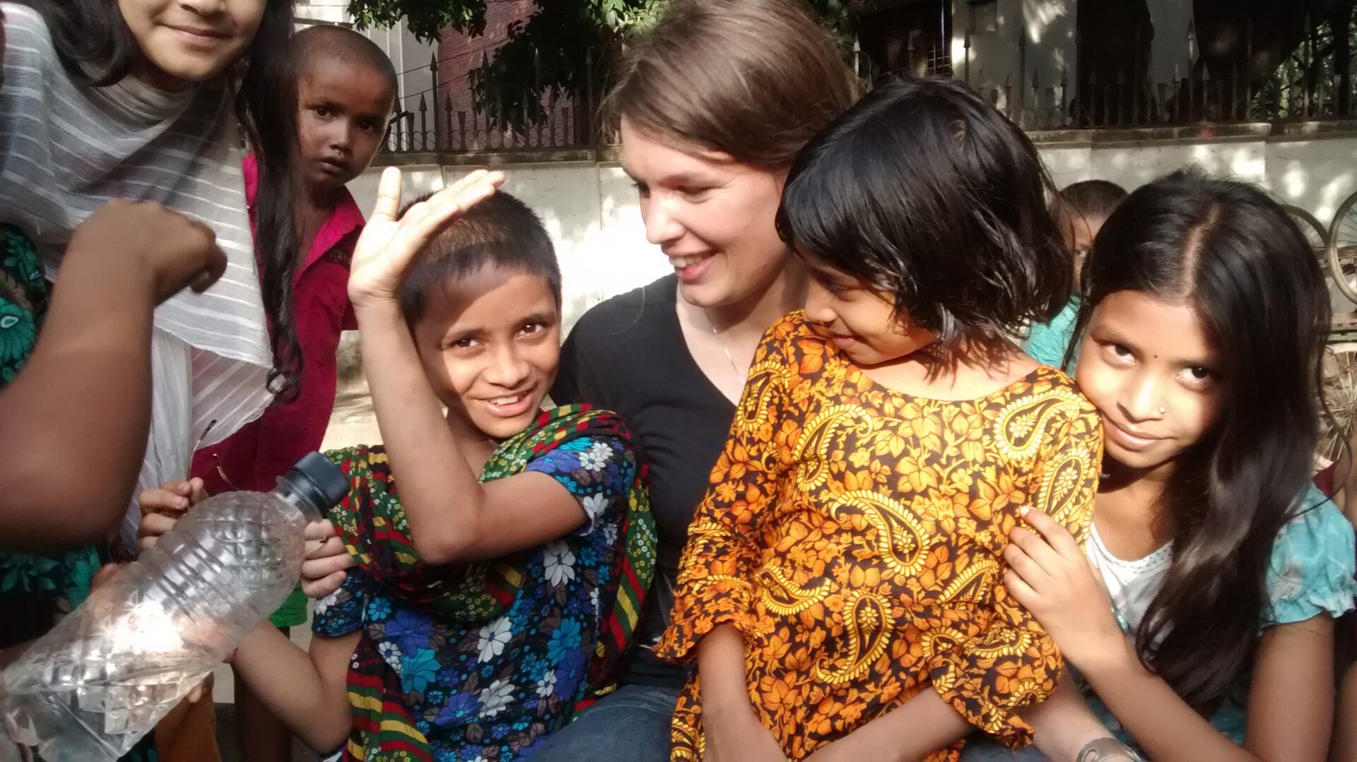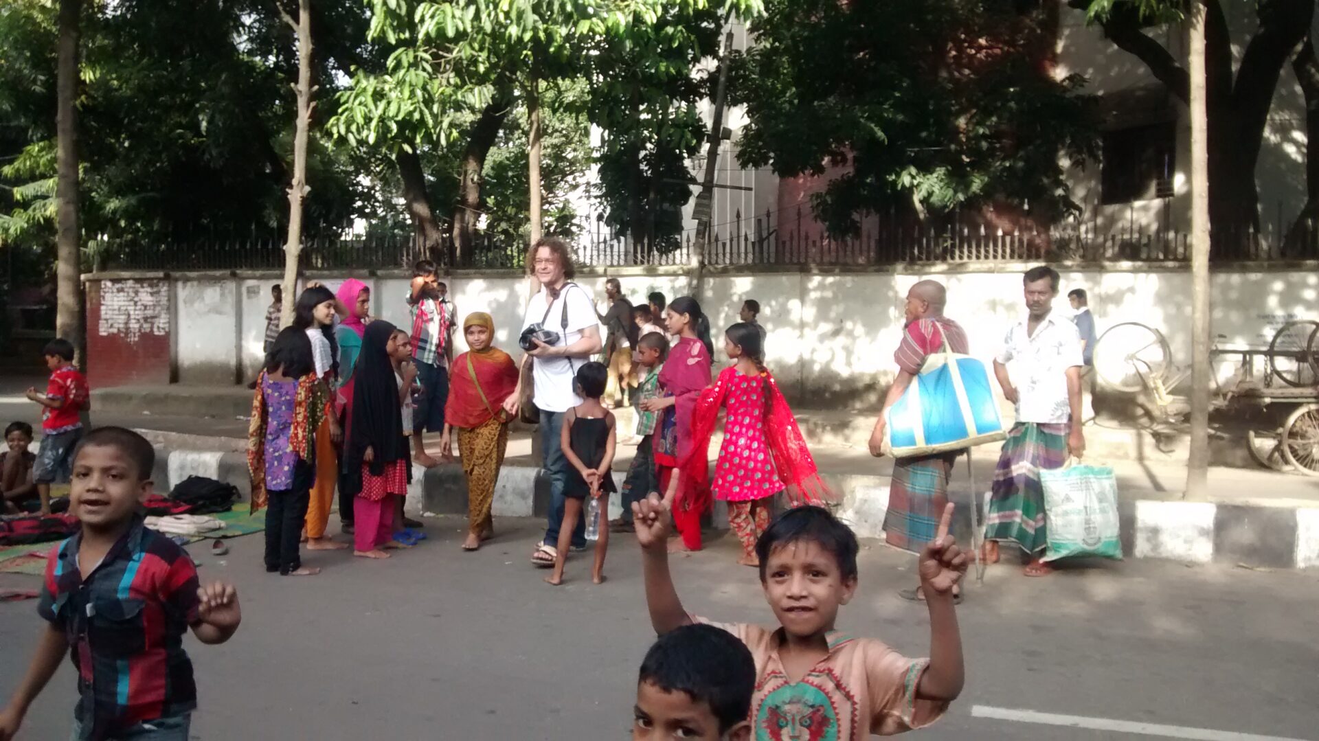 The children are already looking at us, and they run forward in a group to meet us. The teachers are telling them to watch the traffic while they cross: one of the biggest hazards for the children. Four girls come to me and ask me: “Hello, what is your name?” “My name is Sabya, and yours?” “My name is Kameela.” And a big smile. Then the next and the next and the next come to say hello, and afterwards Emran says there are 85 children in total. Martijn asks some children if they want to be on a photo. Stopping the traffic in the street he portrays them. Emran asks them about their life, name and age. Slowly the big group of children start s to become individuals who have their own name, face and story.