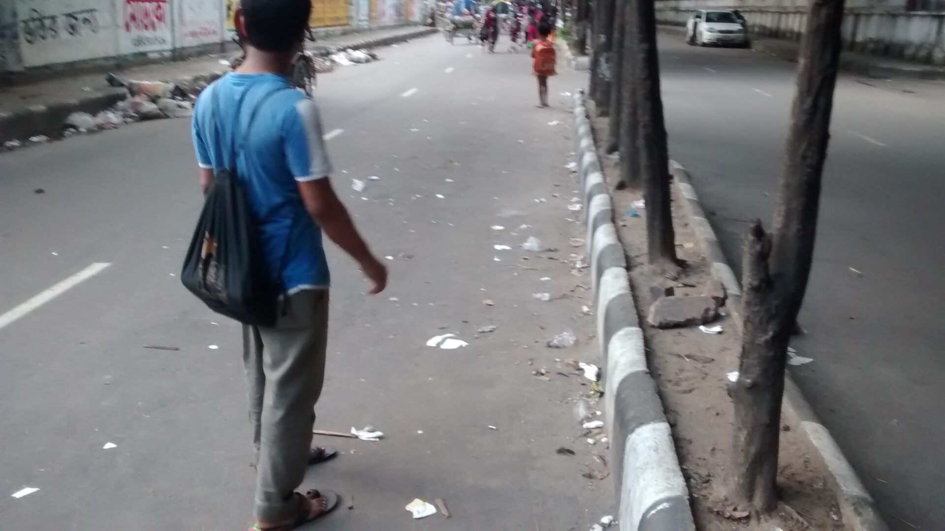 Some small children are sleeping on the mats, others are writing in their books, and some are playing with stones on the street. A girl named Shrini beckons me to come, and helped by her teacher, who speaks English, she explains the stone game to me. She is very fast throwing and picking up stones from the street. And they make me try, clapping loud when I succeed, and helping when I fail. After receiving Iftar from us, the snacks they eat at night when it is Ramadan, they all walk off to ‘home’, to come back the next day again.