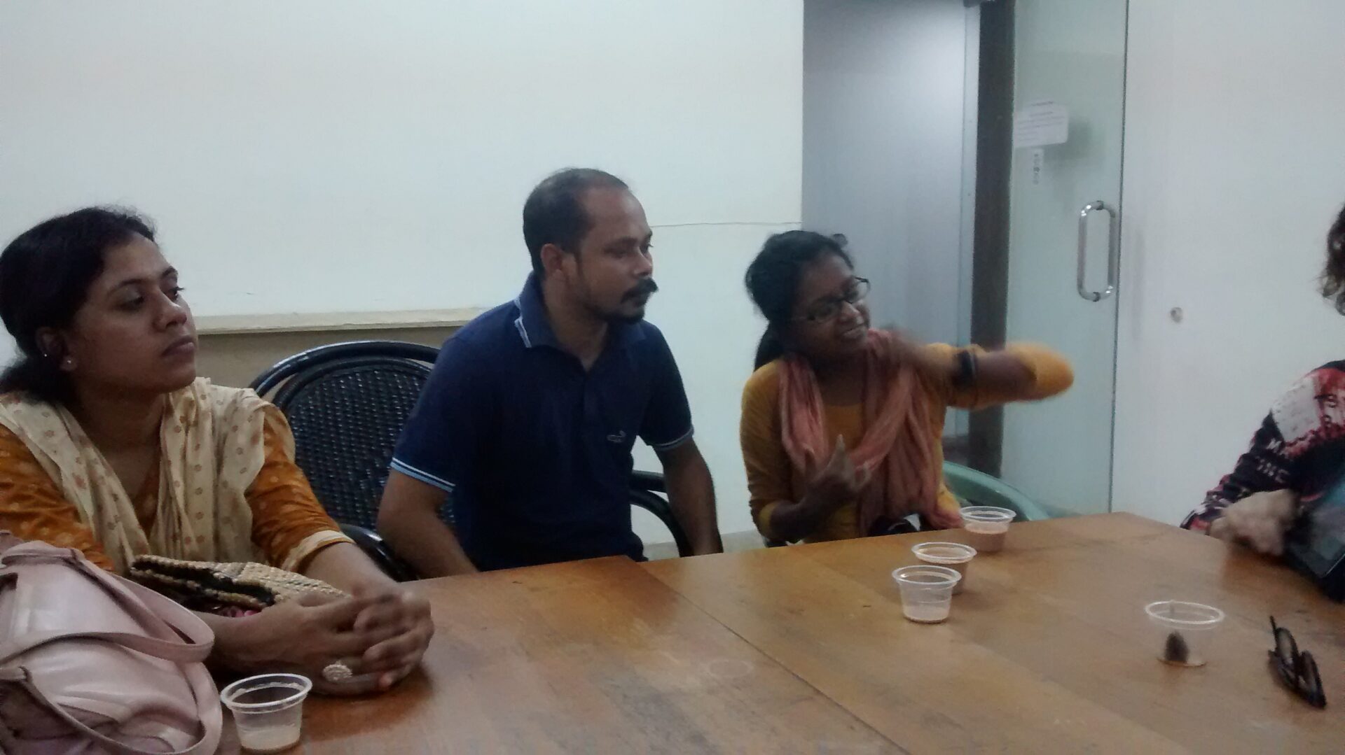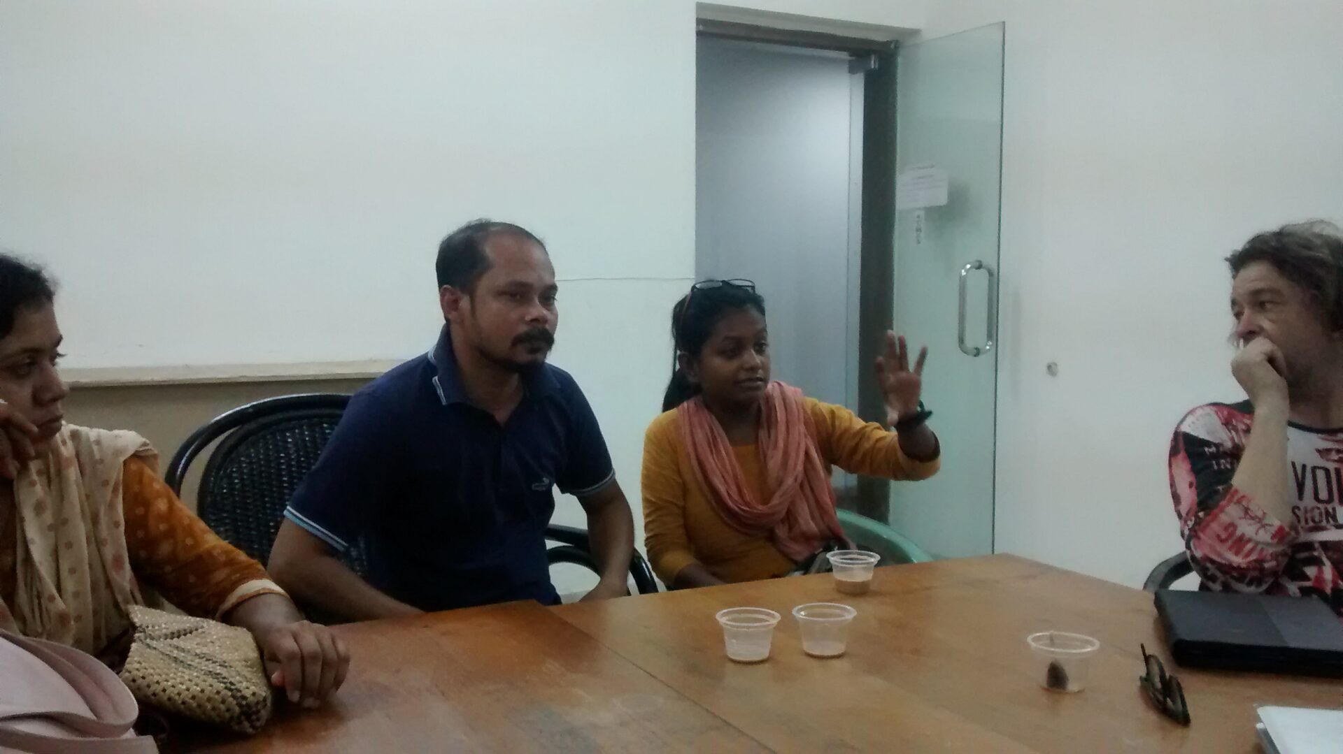 – Samsul shows Hijra works. He is new to the group, and is thinking about the subject. Sumon introduces him, tells about his work with groups of people in Dhaka, he shows his work to us. He worked with people and portrayed them in his ‘love studio’, where they could portray their own dreams. All over Dhaka people live, he is thinking of working with different levels (poor, middleclass, rich) of people who live in the city. He will develop a plan the coming week.