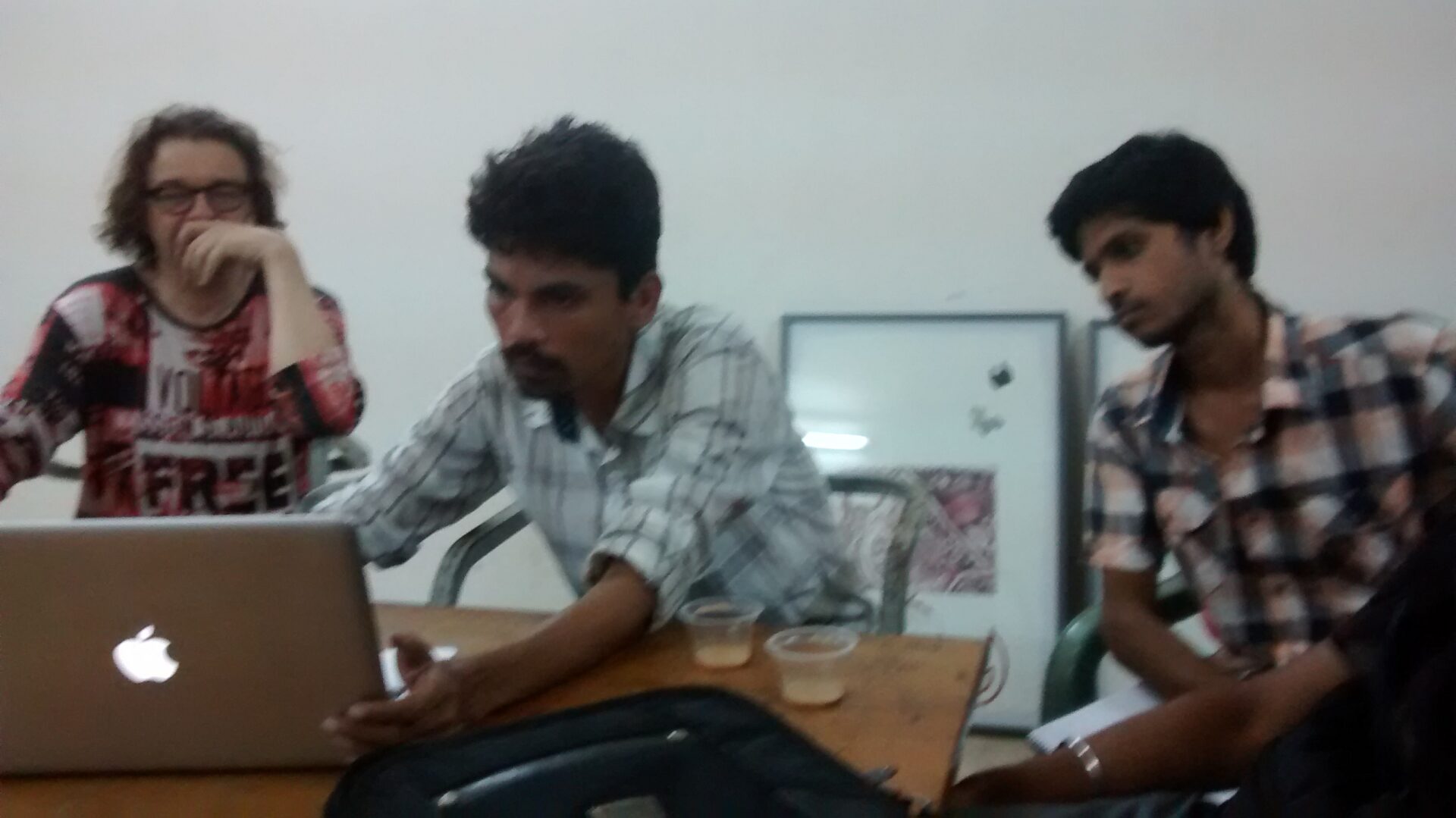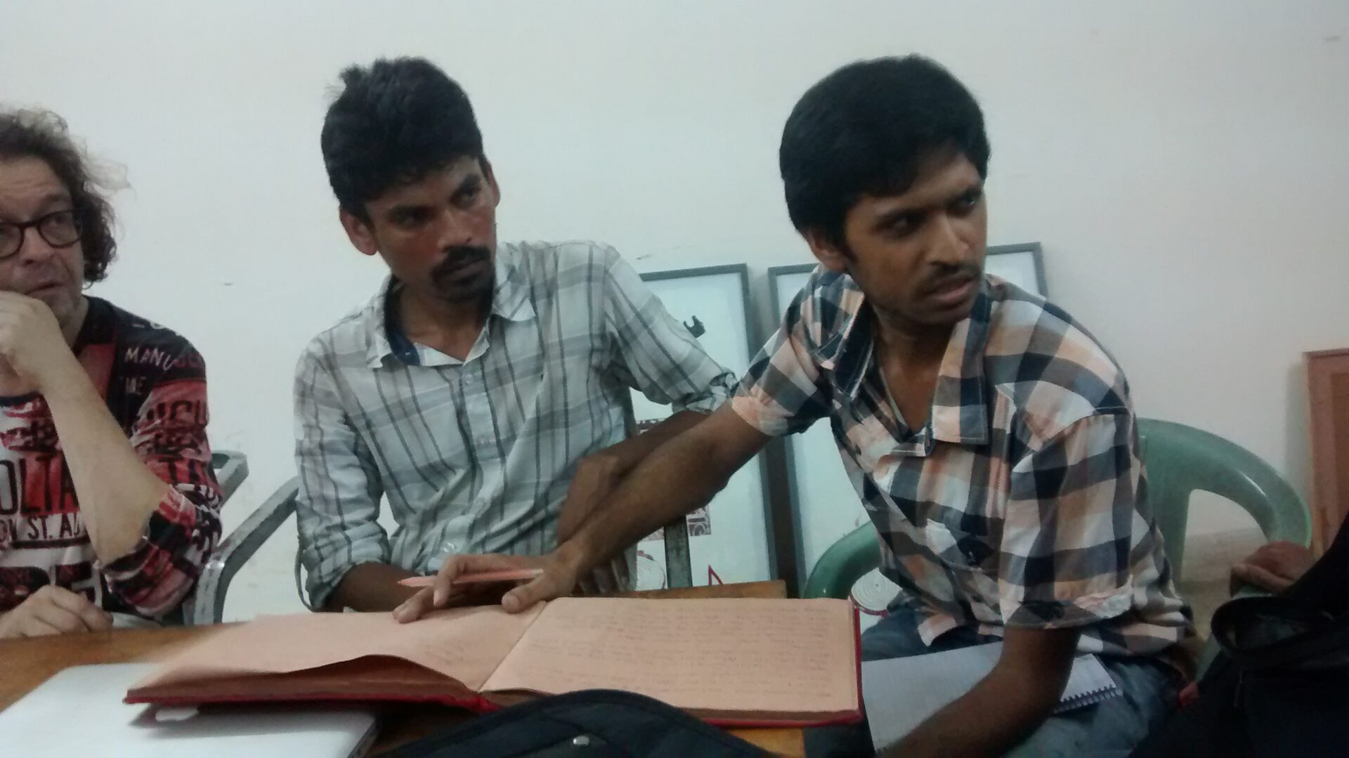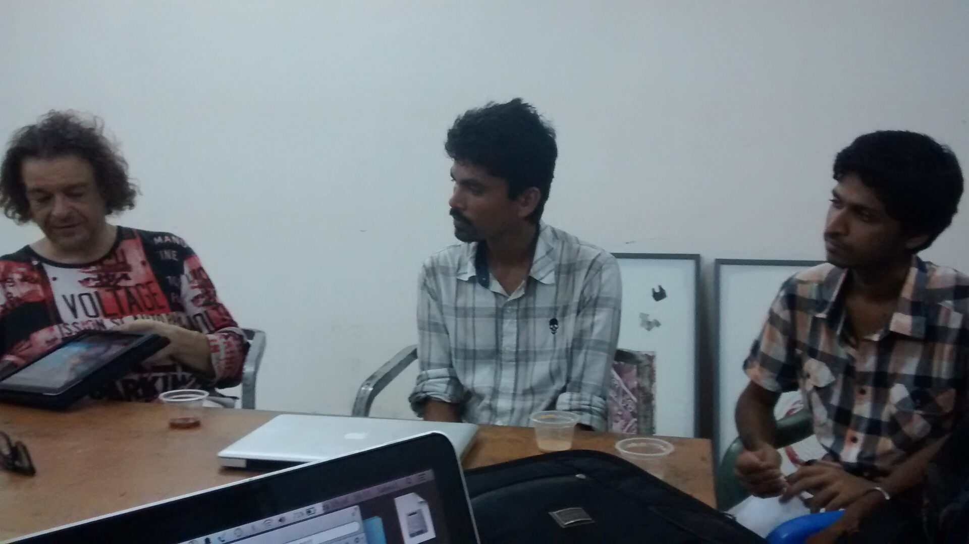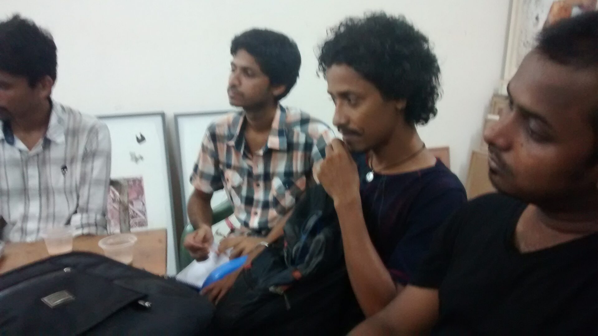 Martijn is thinking about a place where everybody puts part of their work, for example the Dhaka art centre. We can use internet and a book as a showing of all the work together. And also expose the work in all places in the city that everyone choses. It could be giving the portraits to the people they are from, or any other way. Let’s all think about our ideas, and post them on facebook, next week we discuss.