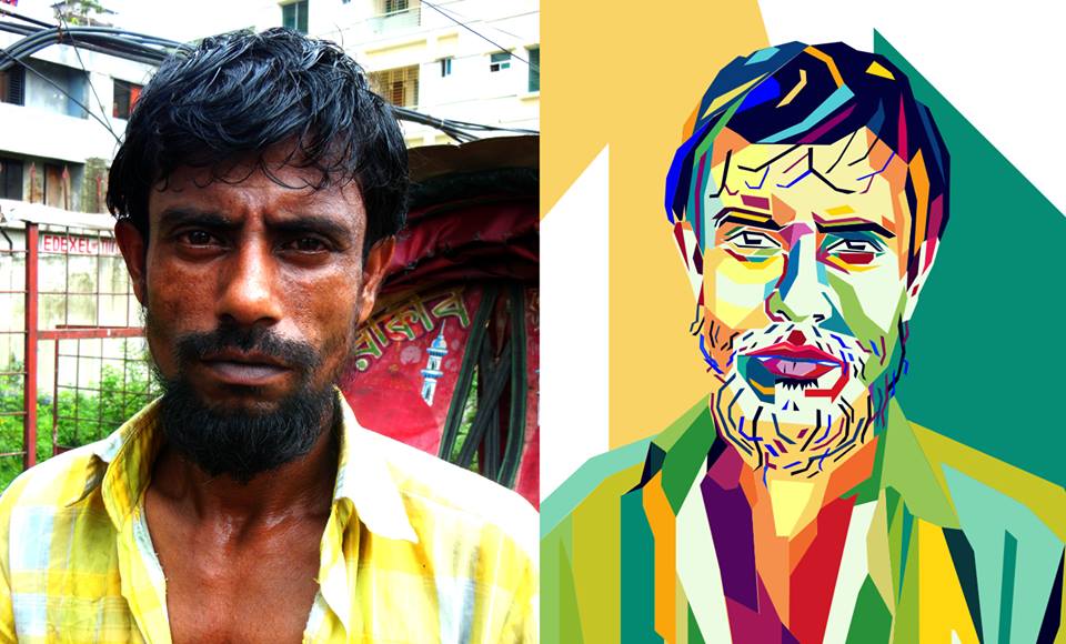– Emran and Martijn made 50 portraits of both homeless and Rickshawdrivers, a whole process of getting to know them. Yesterday they went to the Rickshaw garage, and learned a lot about this work. One rickshaw costs 18000 taka, which is 180 euro. To rent this the drivers pay 80 taka per day, and they earn 300 taka per day. There is an amazing variety of people working there: people from outside Dahak earning some money. And the last days we went on the streets to portray crazy people, they did not talk, or not normal, maybe they were demented. Martijn shows the woman with her cats and dog, sleeping in the middle of the road, telling us she is the mother of all people. And the woman who is over 100 years old, and asked 10.000 taka for her portrait.
